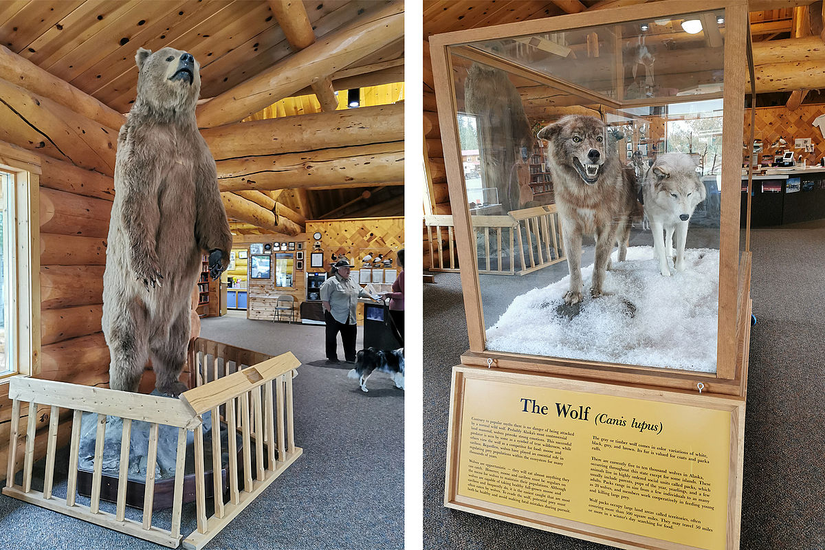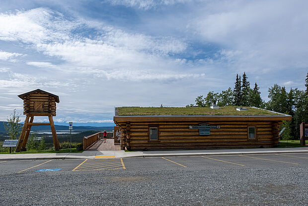 Ein paar Kilometer weiter halten wir erneut in einem Visitor-Center mit Aussichtsplattform, von dem wir eine gute Aussicht ins Flusstal haben. Außerdem informieren wir uns über die die First Nations der Gegend, die Dineh (Athabascan) und geologische Besonderheiten. Sehr interessant.