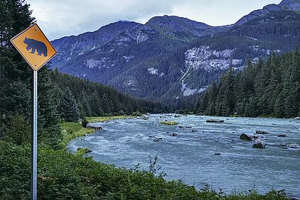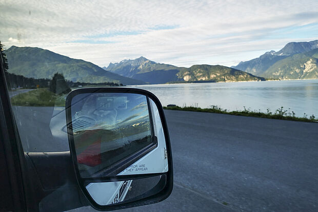 Nun fahren wir auf dem Haines Highway entlang des Chilikat River. Hier befindet sich das Schutzgebiet Alaska Chilkat Bald Eagle Preserve – eine der größten Weißkopfseeadler-Populationen der Erde. Der Fluss fließt dann ins Chilkat Inlet, einen Teil des Lynn Canal. Hier liegt auch Haines, unser heutiges Tagesziel. Wir sind am Pazifik.