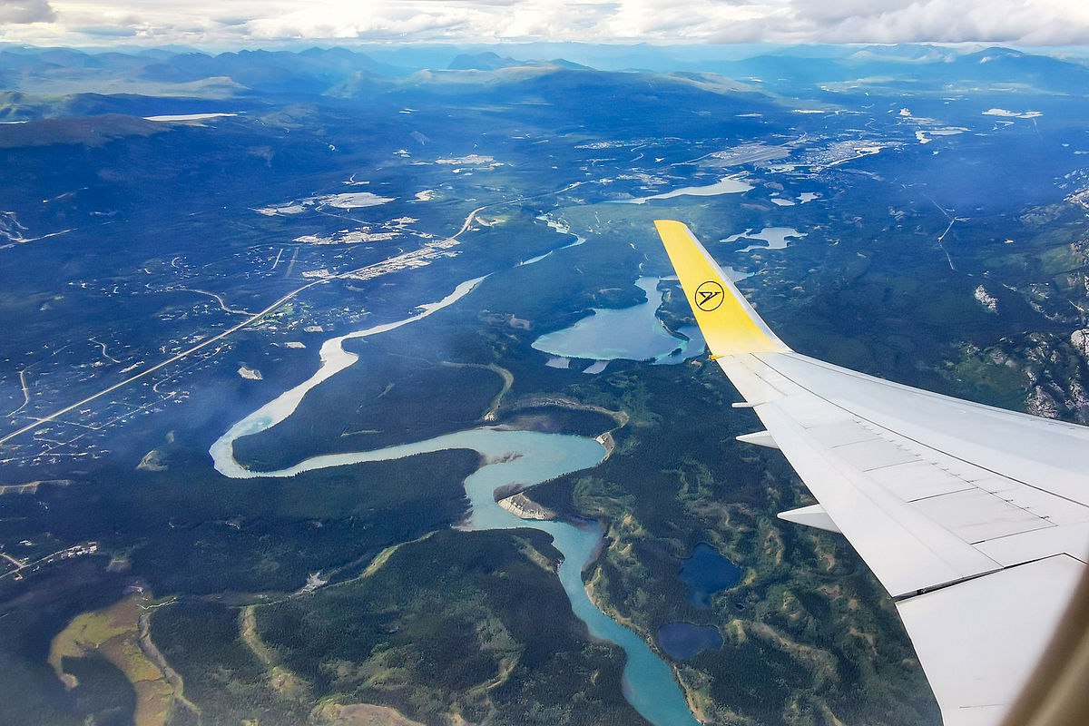 Ich habe einen Fensterplatz. Es ist schönes Wetter. Und so kann ich mich mit ein paar schönen Fotos von Kanada verabschieden.