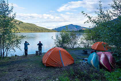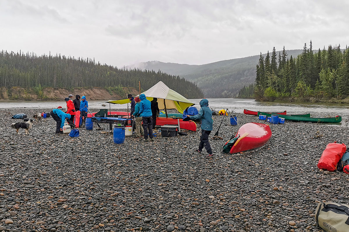 Der Teslin mündet hier in den Yukon. Und den müssen wir erstmal überqueren - und dabei das Camp treffen. Ein neues spannendes Manöver, das aber bei allen klappt.