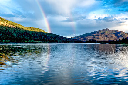 Ich gucke mal, was die Angler machen. Und finde eine schöne Landschaft mit Regenbogen.