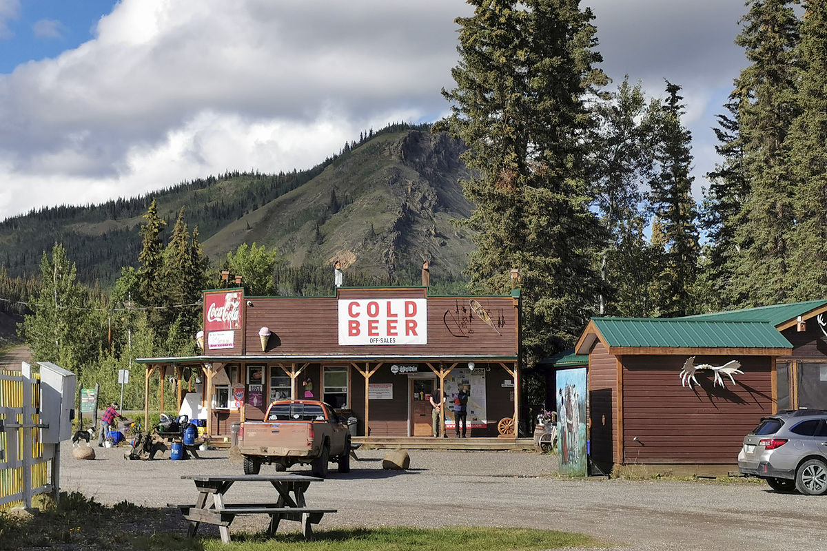 Carmacks ist ziemlich auseinandergezogen. Es gibt hier eigentlich nichts zu sehen. Im einzigen Store des Ortes gibt es fast alles. Wir holen ein paar Knabbereien, dann geht es zurück.